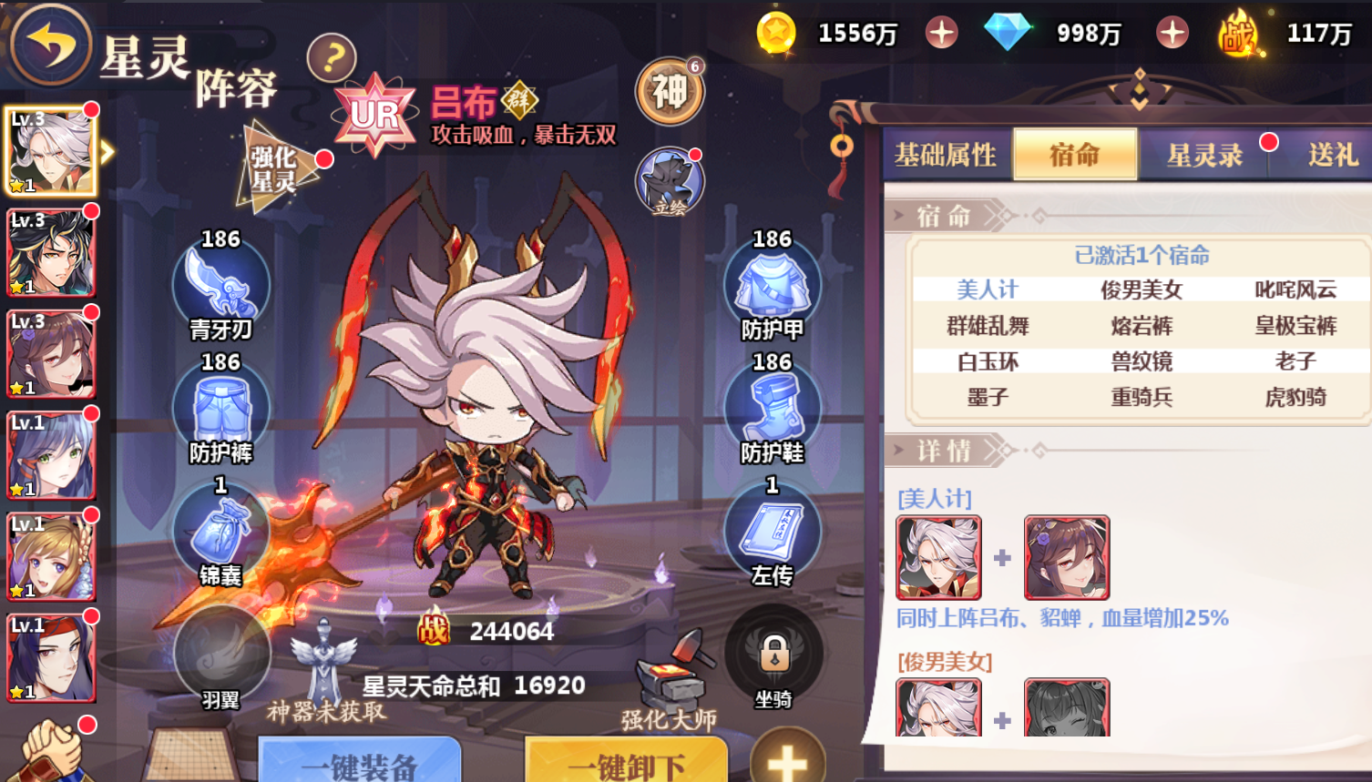 阵容搭配:吕布、袁绍、董卓、貂蝉、贾诩、刘协。
